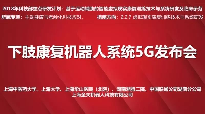 在今天10月25日10:50-11:20由上海中医药大学徐建光校长牵头,上海机器人产业技术研究院提供技术支持的国家重点研发计划——基于5G技术多点协同远程康复机器人诊疗技术在此次年会上发布。本次发布联合普陀区政府、星空xk(中国)机器人有限公司官网、上海华山医院(北院)、湖南湘雅二院、中国联通公司及上海金矢机器人科技有限公司,开展多点协同5G远程康复机器人诊疗项目发布及现场展示。