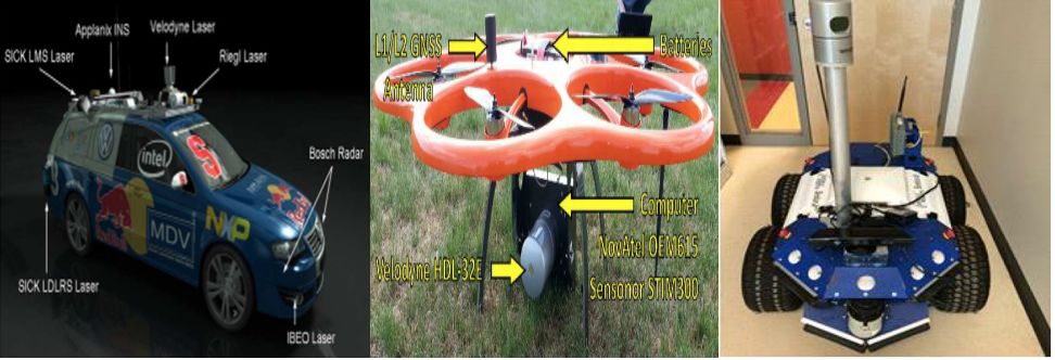 通过调研及查找相关文献,目前激光雷达和全景相机组成系统主要应用于SLAM、地图构建、定位、导航、路径规划等研究领域。该系统可以实现无人驾驶三维环境识别重建、机器人星空xk室内外高精度地图构建和跟踪导航,能够将外界环境颜色信息和深度信息集于一体,可大大缩小识别误差和信息错误丢失率,如下分别为装有该系统的无人车载实物图及其实现的地图构建效果图。